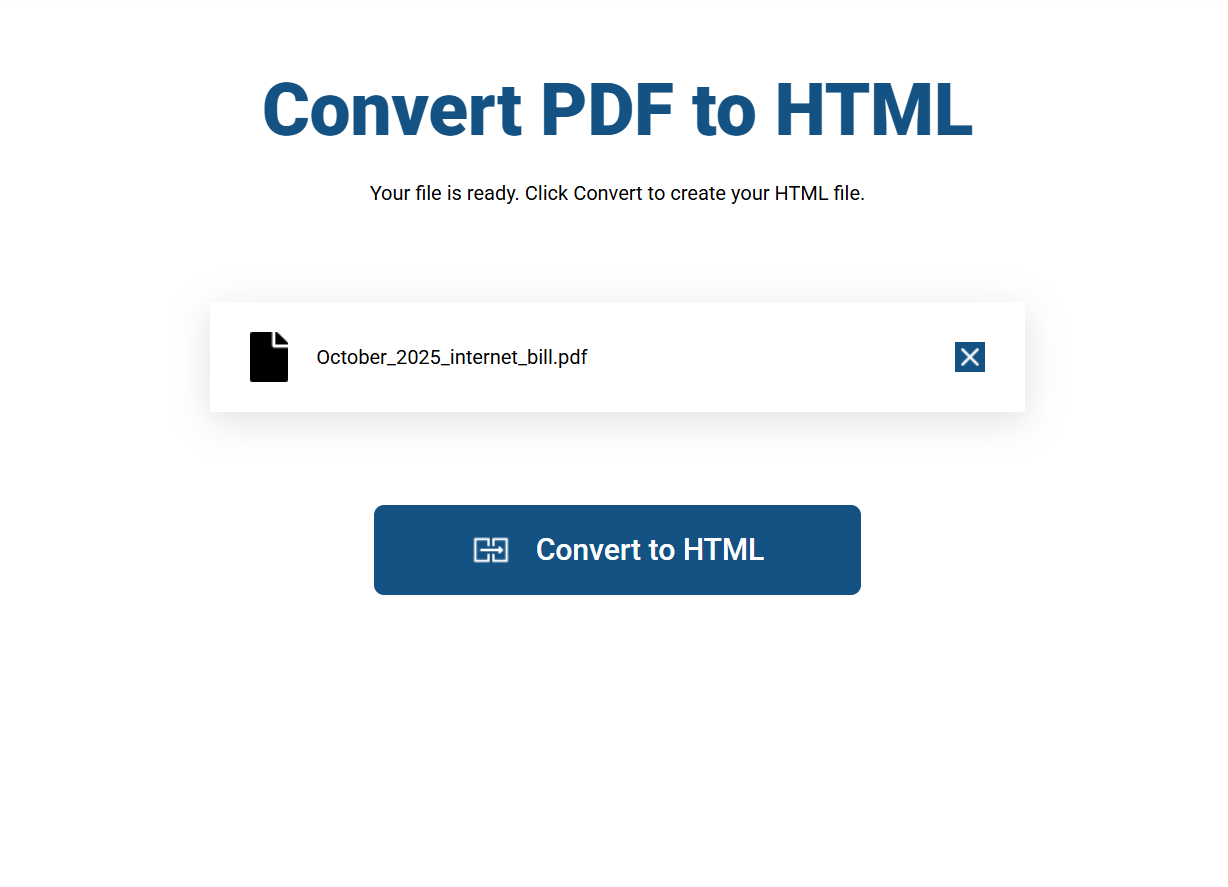 Upload your PDF, convert it to HTML, and download your web-ready file in just a few seconds.