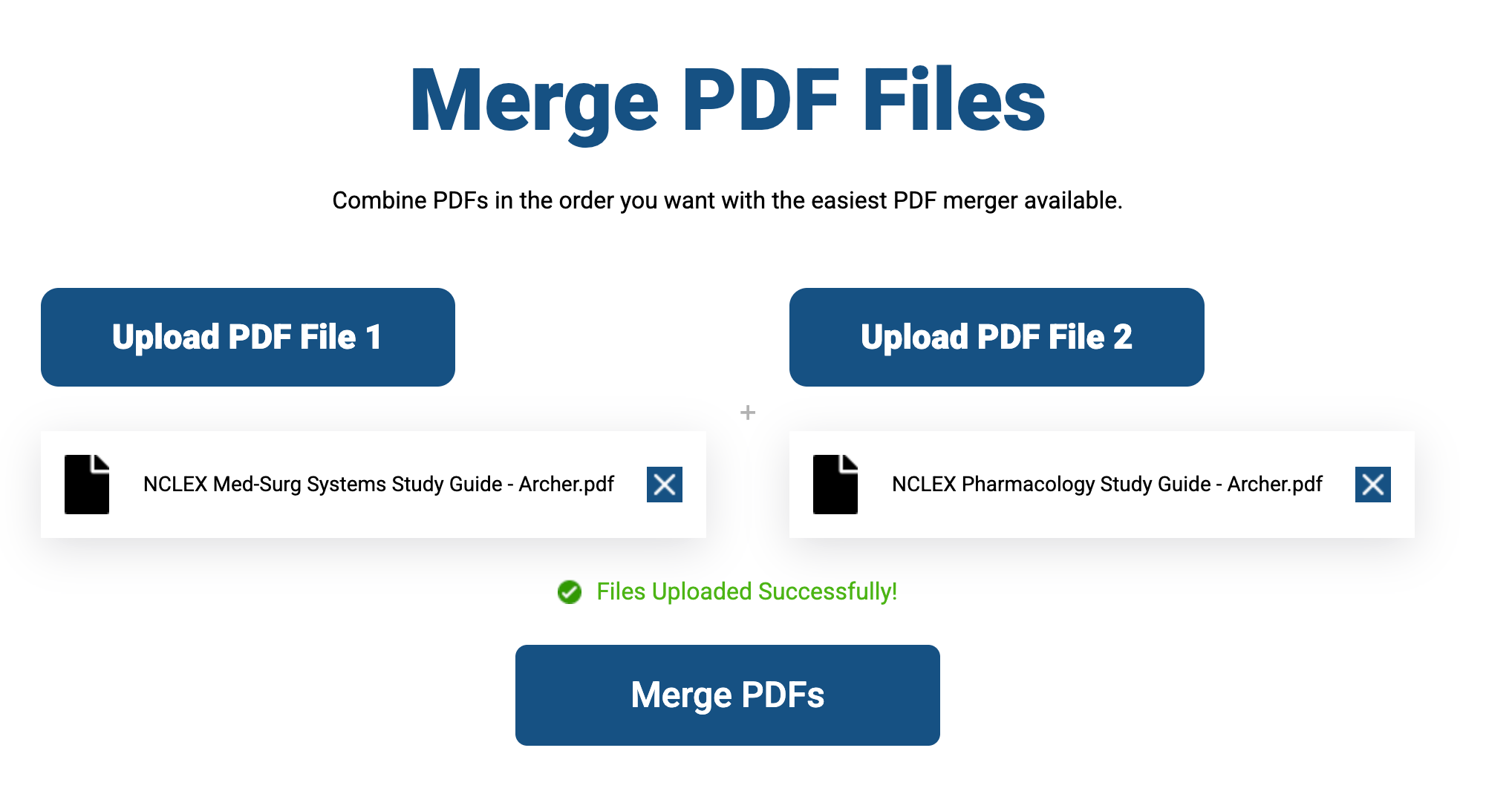 Once both files are uploaded, simply click the Merge PDFs button.